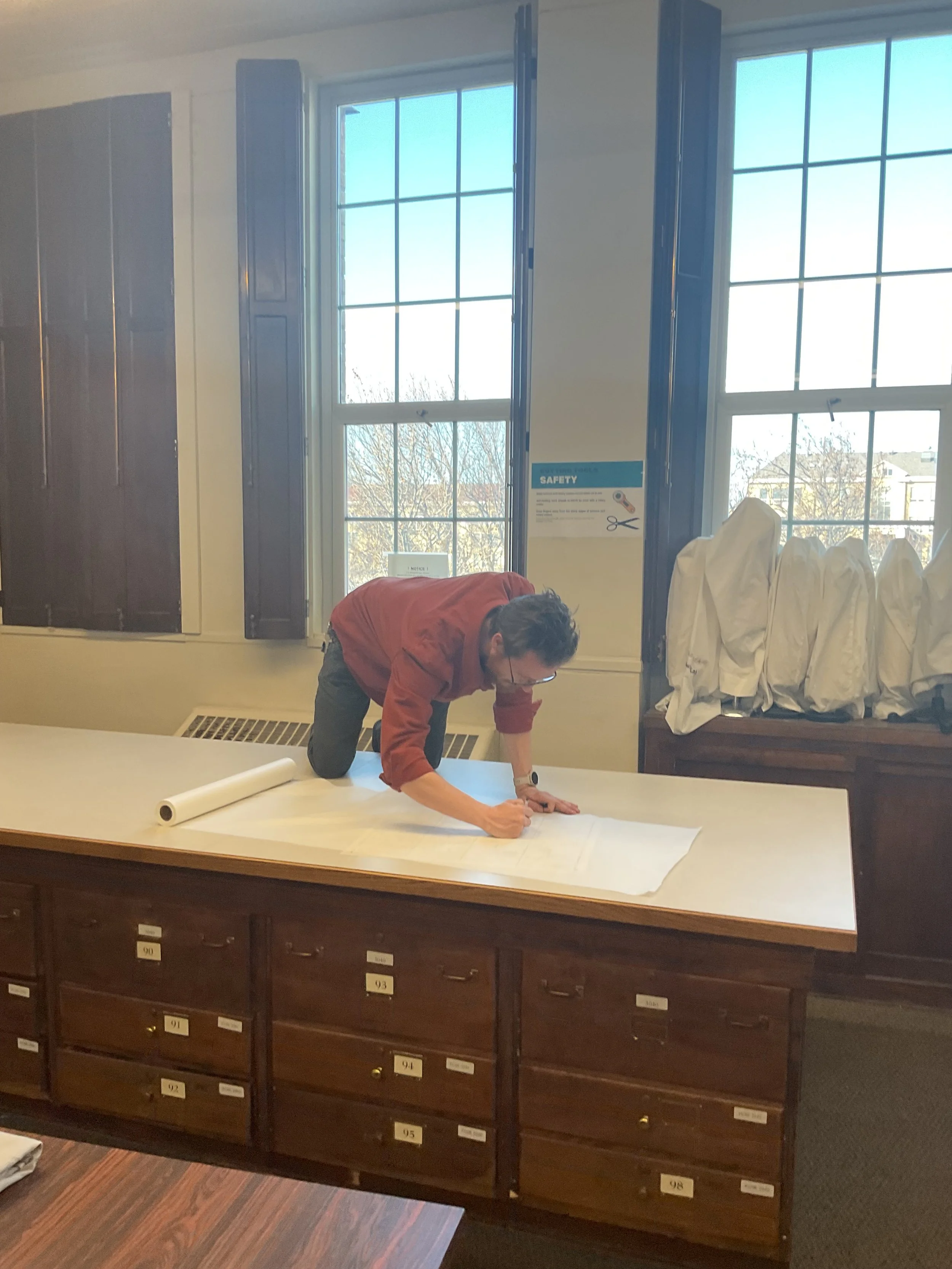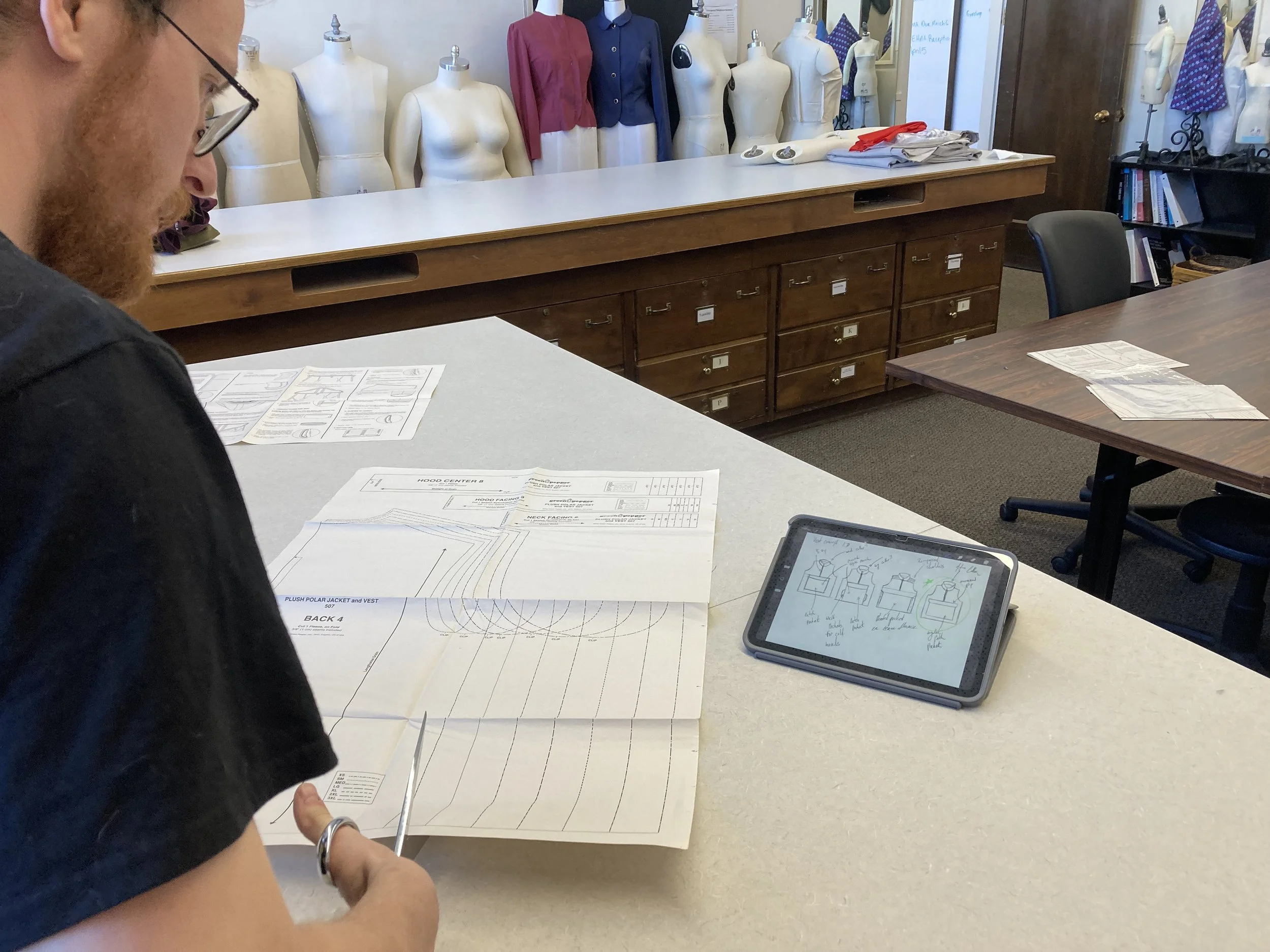 Cutting out the pattern while verifying I’m on the right track with my sketches