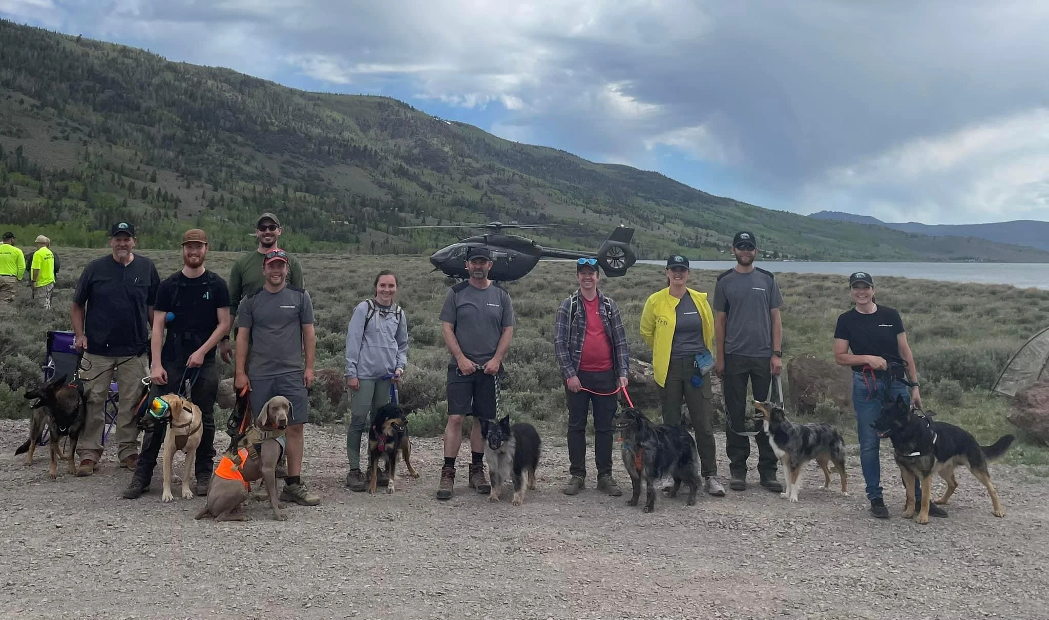 Ridge and I with the Search and Rescue team we volunteer with doing our first helicopter training session